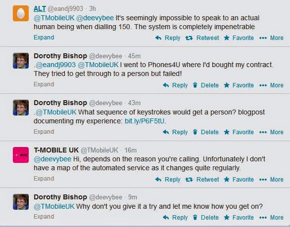 I got back and found that TMobileUK had been active on Twitter, perhaps stung by adverse comments from another Tweeter: